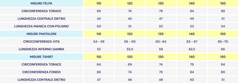 ma semplicemente l'altezza del bambino! Siamo consapevoli del fatto che le diverse fisicità non sempre sono classificabili in uno standard di età. Per questo motivo, le nostre taglie sono basate sull'altezza, garantendo una vestibilità più accurata per ogni bambino.Troverai comunque una guida alle taglie che ti aiuterà a capire bene qual sia la vestibilità del capo che stai acquistando!